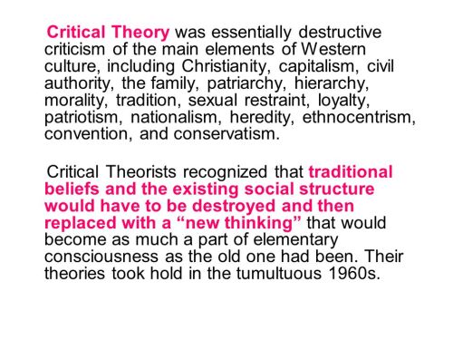 Critical Theory – One of the main tenets of the Frankfurt School’s cultural Marxism